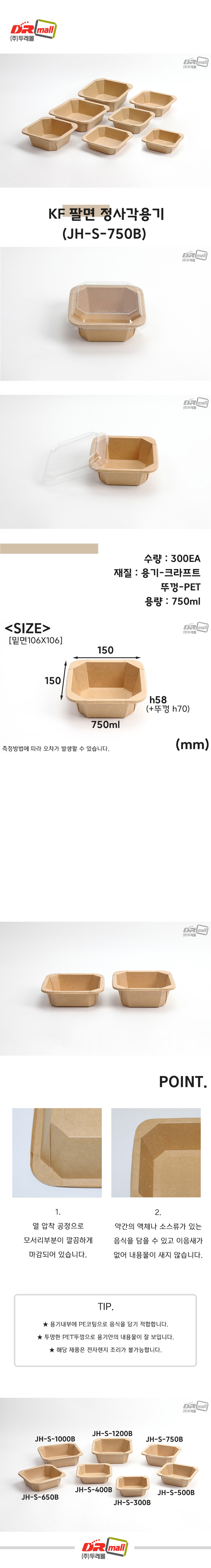 > 팔면정사각용기-750ml (JH-S-750B) [300개*222원]