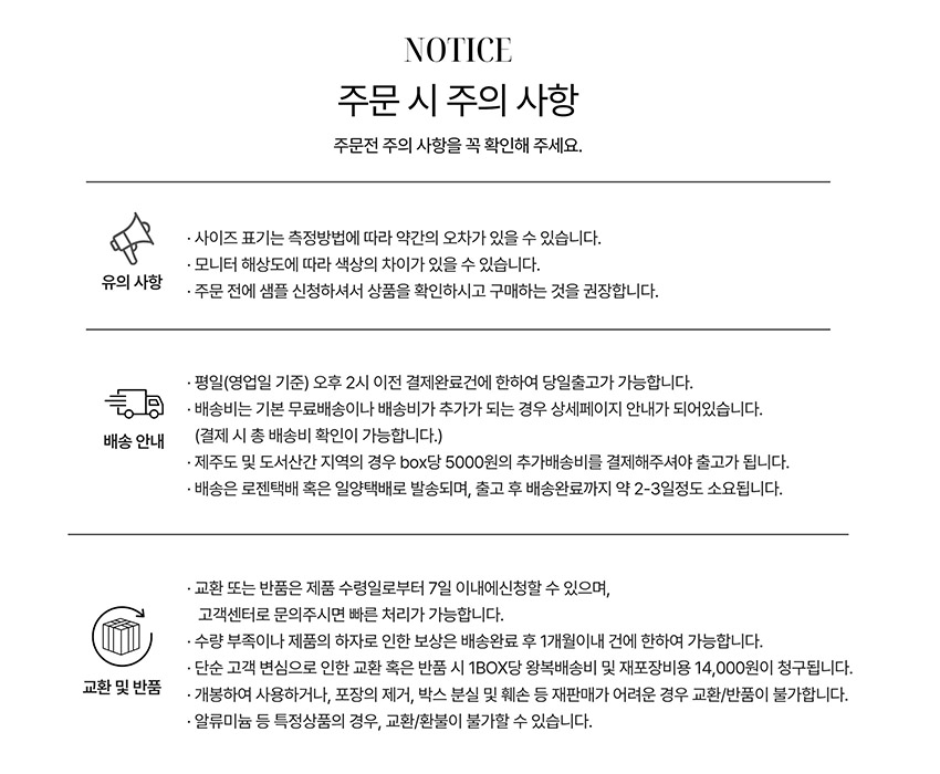 제주도 및 도서산간 지역은 BOX당 5,000원의 배송비가 추가됩니다.